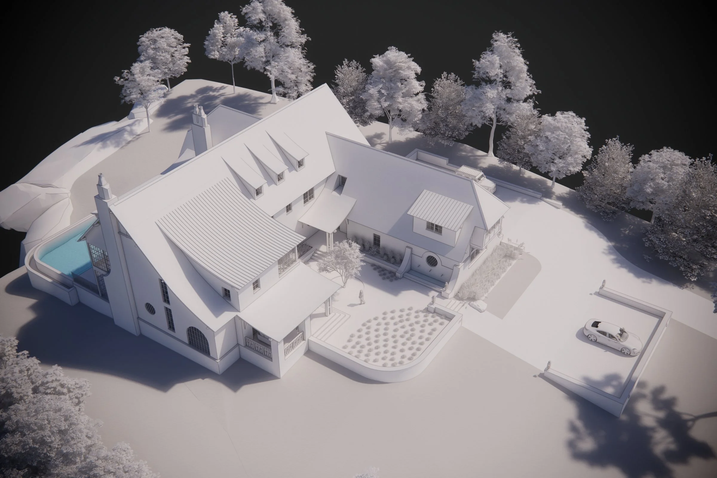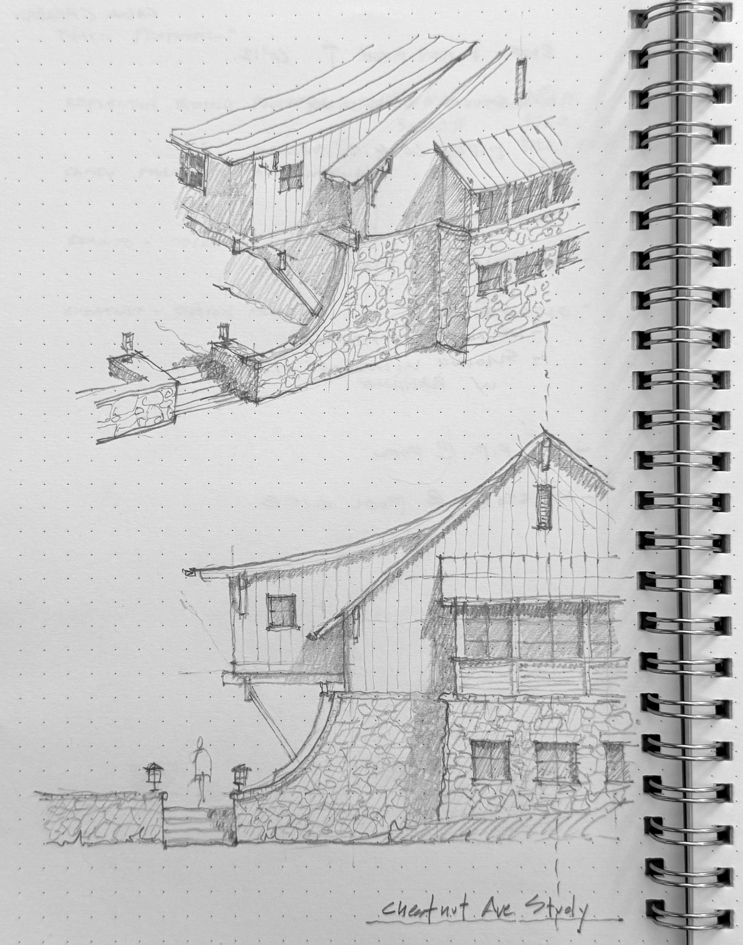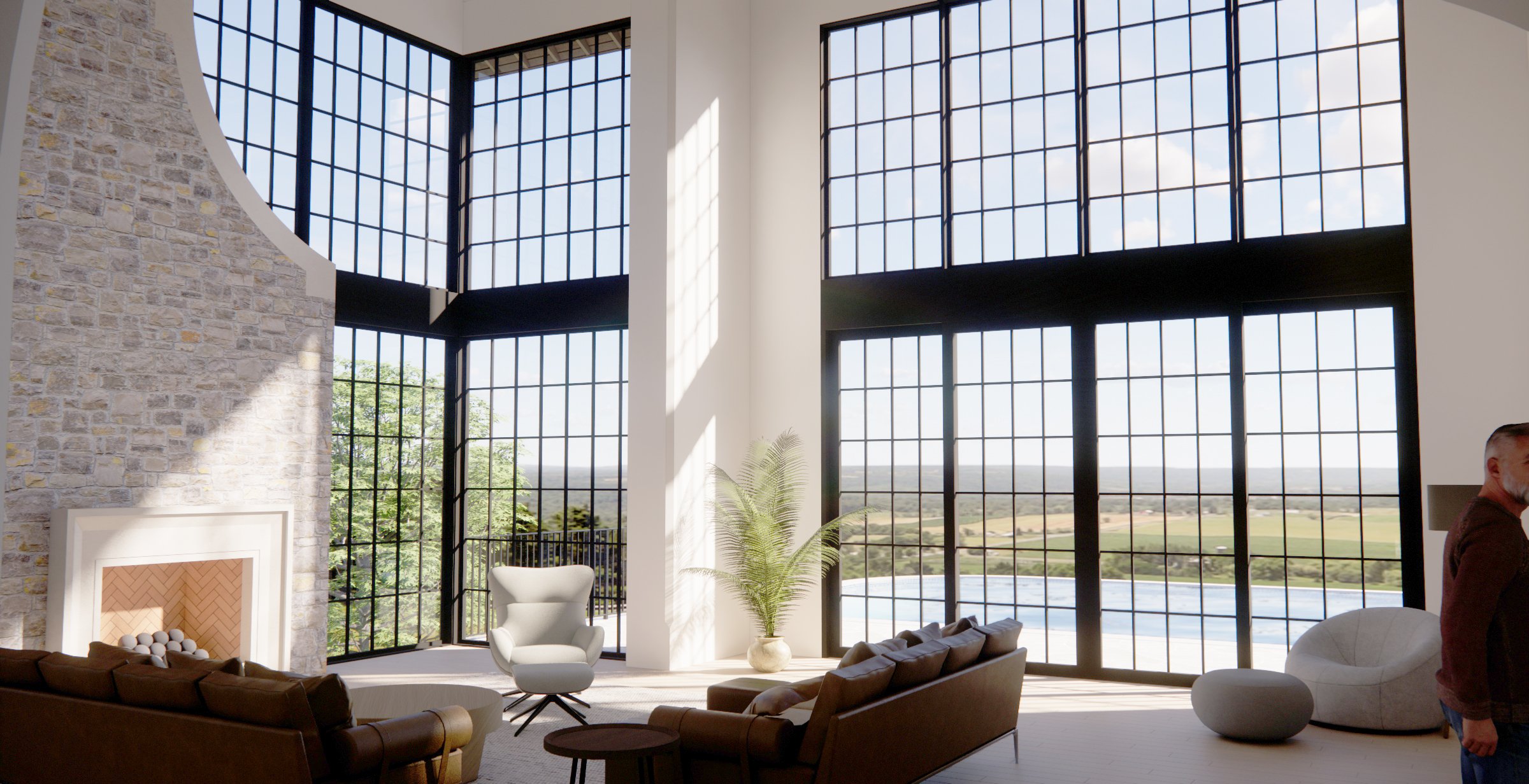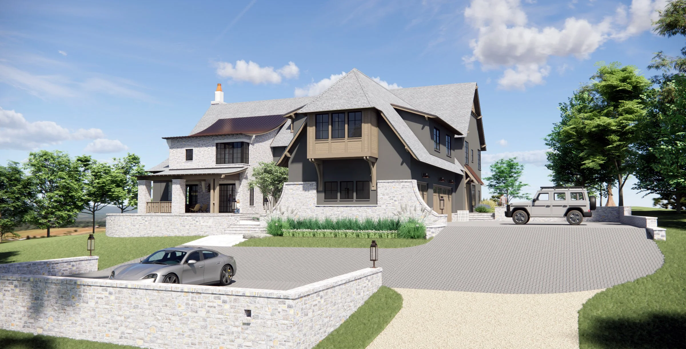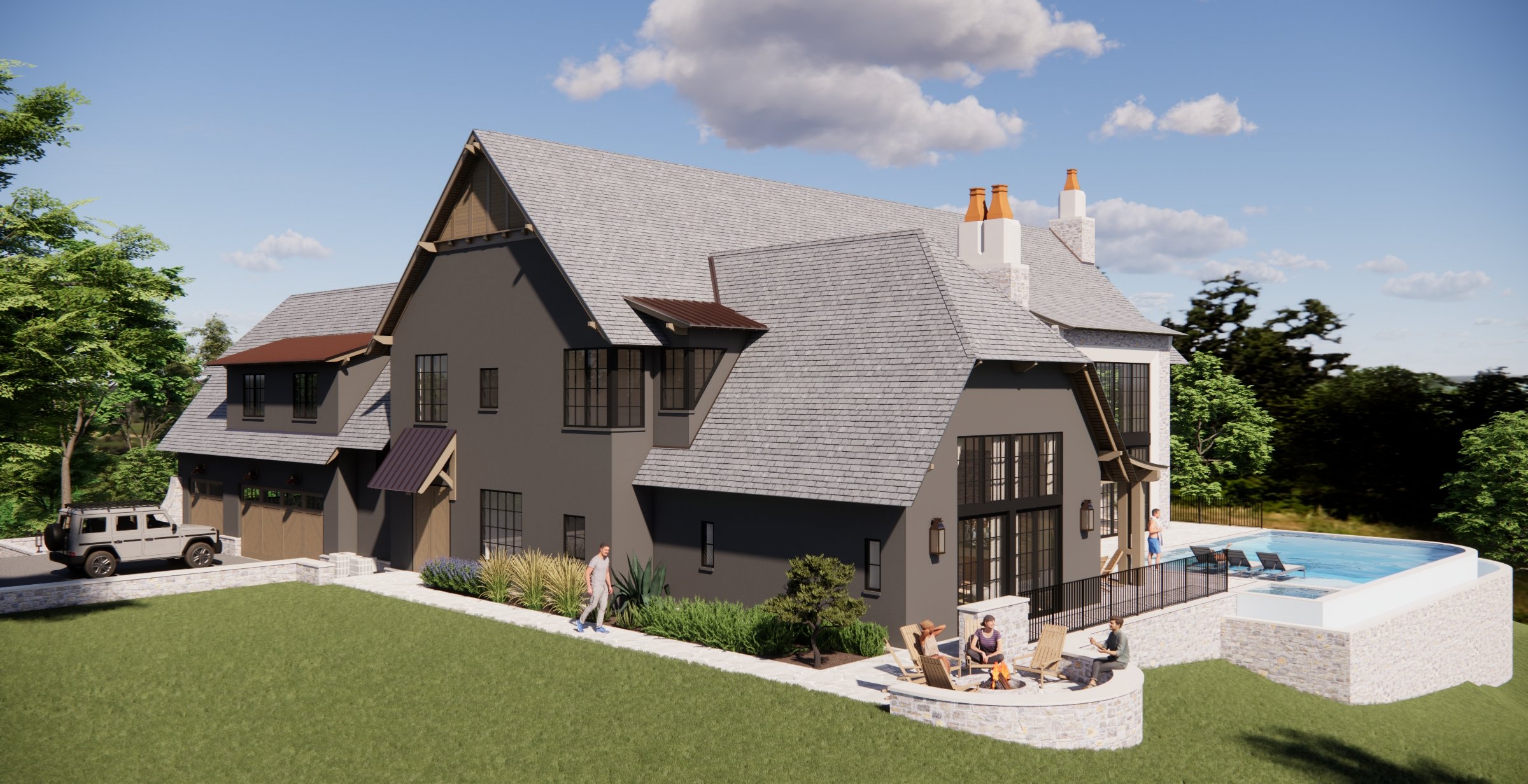 The Chestnut Avenue Residence is located on a premier brow-view lot on the top of Signal Mountain. The property is a long, narrow, 2-acre wooded parcel that culminates at the Cumberland Escarpment, 1,000 feet above Chattanooga. For this notable location, the client desired a traditional, yet unique, style for the residence, blending mountain materiality with traditional forms and character. Balancing the size of the client’s desired scope with the constraints of the property itself was the primary challenge. The narrow lot, and desire to maximize the brow views, led to a modified H-plan with the long axis of the house running parallel with the escarpment. The spaces are arranged so that upon entering, the expansive view of the valley beyond is carefully revealed. The kitchen, living, and primary bedroom are all located to take advantage of the incredible views, while the dining room, office and guest suite look out into the forested landscape with it’s large boulders. A large infinity-edge pool and hot tub will anchor the house into the bluff, while the stone, stucco and slate house rest just above in the landscape.